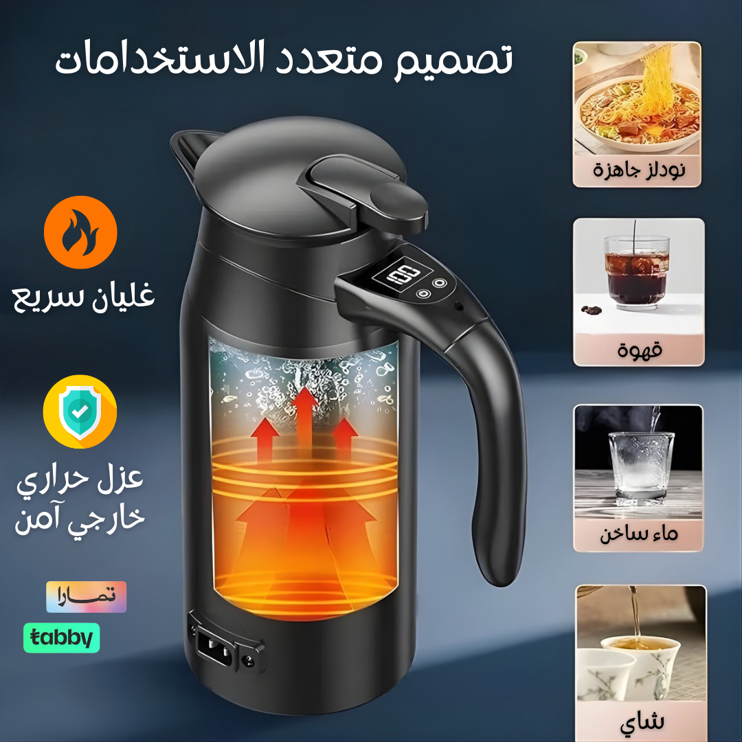 مع غلاية السيارة الذكية استمتع بمشروباتك الساخنة في أي وقت، سواء بالخط أو في الطلعات والرحلات، بتصميم عملي وآمن للاستخدام داخل السيارة.